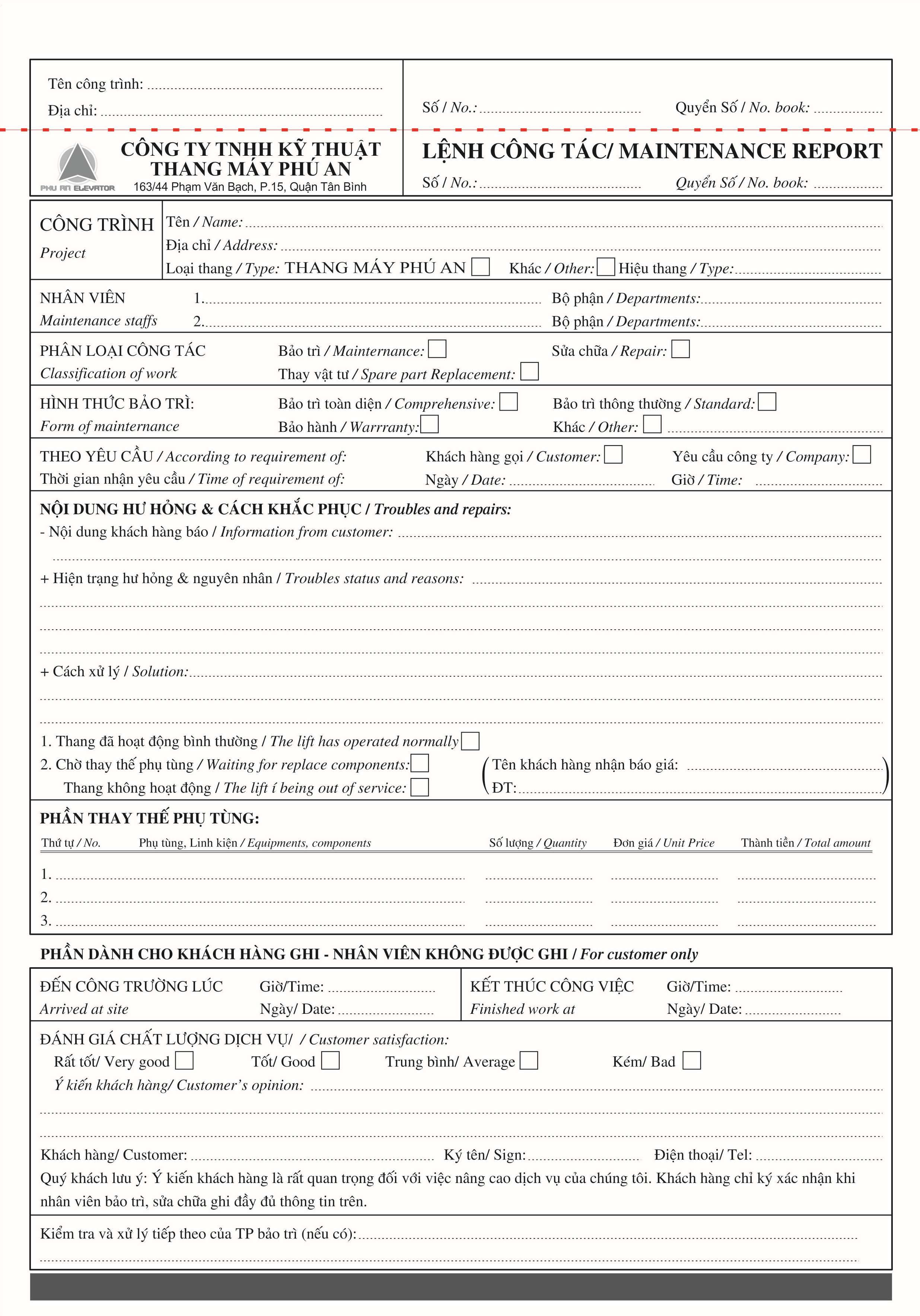 Gói bảo trì thông thường: định kỳ 01 lần/ tháng, khi vật tư linh kiện hư hỏng bên công ty Thang máy Phú An tư vấn báo giá thay thế, giá thay thế vật tư cạnh tranh bằng khoảng 80% so với đơn vị khác