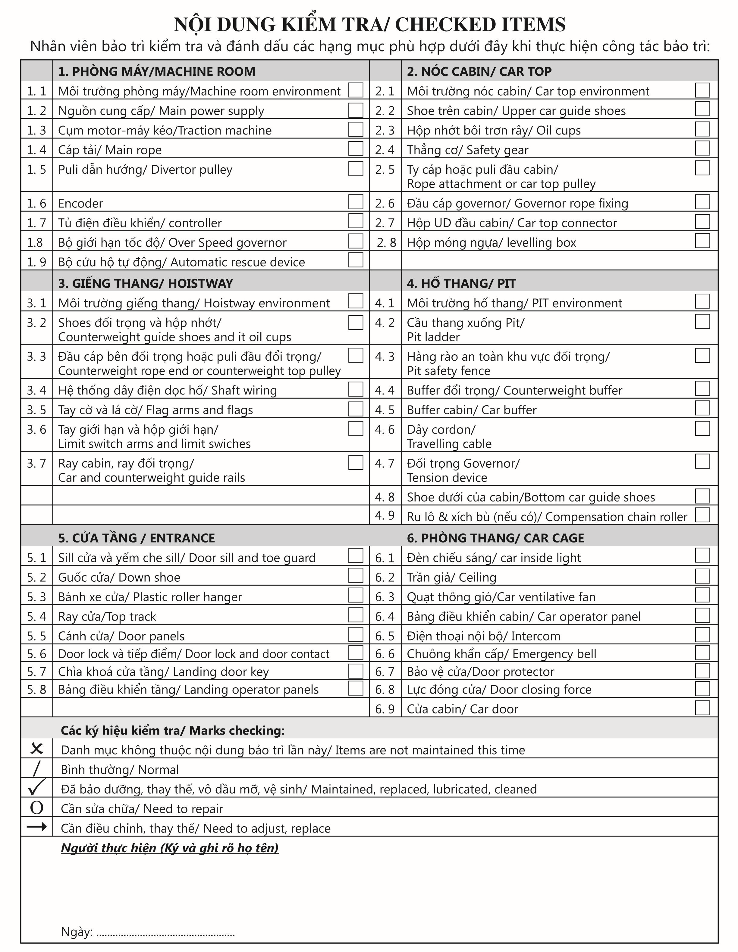 Công tác bảo trì, hiệu chỉnh được thực hiện đúng kỹ thuật, đội ngũ kỹ thuật viên giỏi và nhiều kinh nghiệm có thể sửa chữa được nhiều loại thang, quá trình bảo trì định kỳ có thể phát hiện được những vật tư sắp hư hỏng đễ thay thế nhằm giảm sự cố dừng thang ngoài kế hoạch